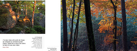 Près de 15o pages en forme d'errances inspirées, en couleurs et en noir et blanc, dans les montagnes, des roches moussues du Mur païen aux puissantes forêts du Donon, en passant par les charmantes prairies du Thillot. Au total, une centaine de lieux célèbres ou méconnus, situés en Alsace et en Lorraine, sont caressés par l'objectif de l'un et le verbe de l'autre, entre espièglerie et rêverie. Comme un appel à la randonnée.