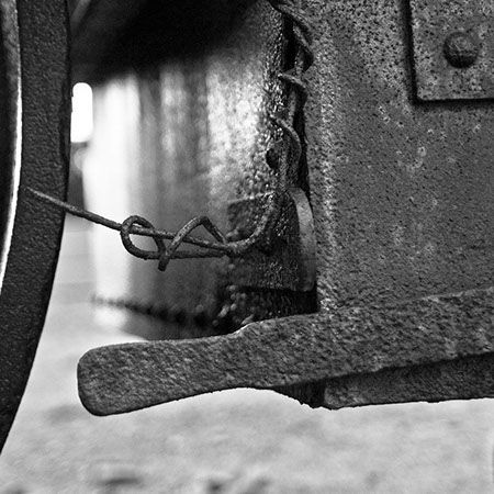 Le chariot du camp du Struthof est un objet désolé, habité par l’histoire, souffrant et saturé de brume, comme une rouille de la mémoire, impardonnable.