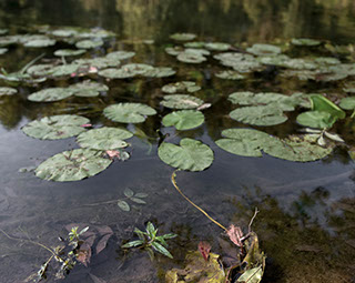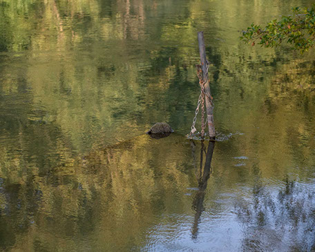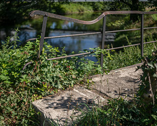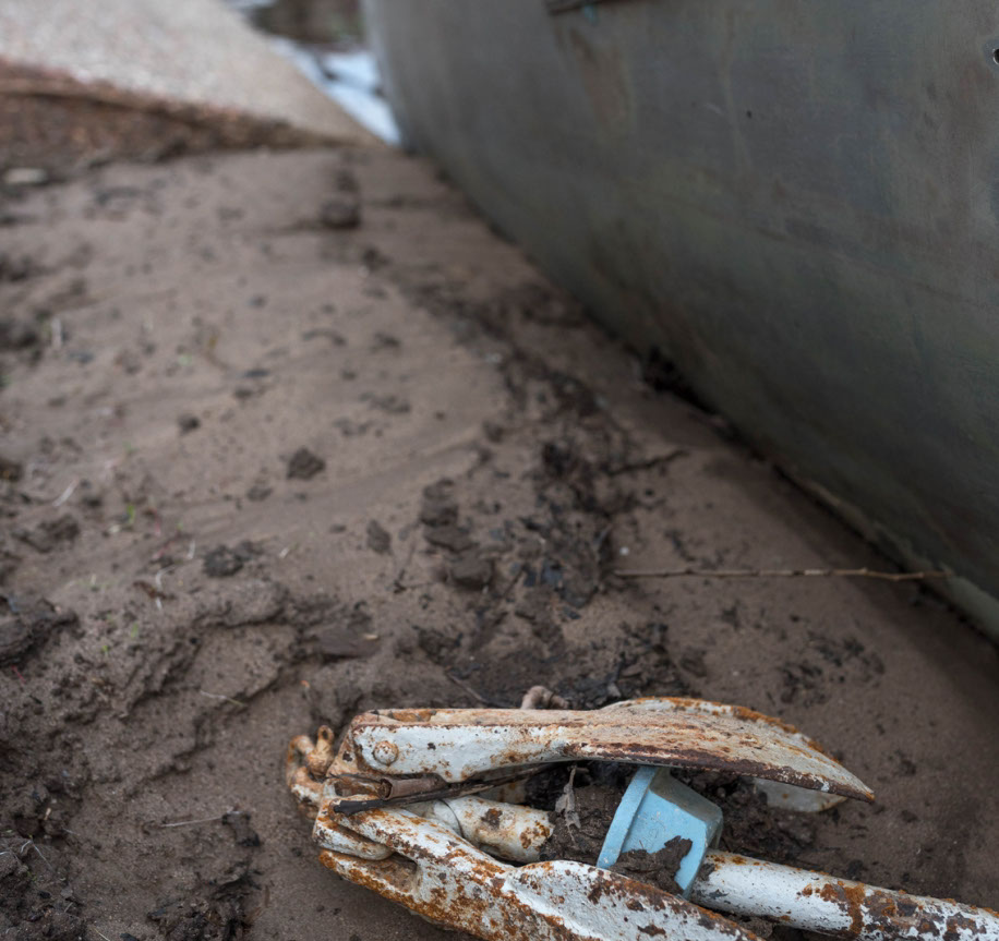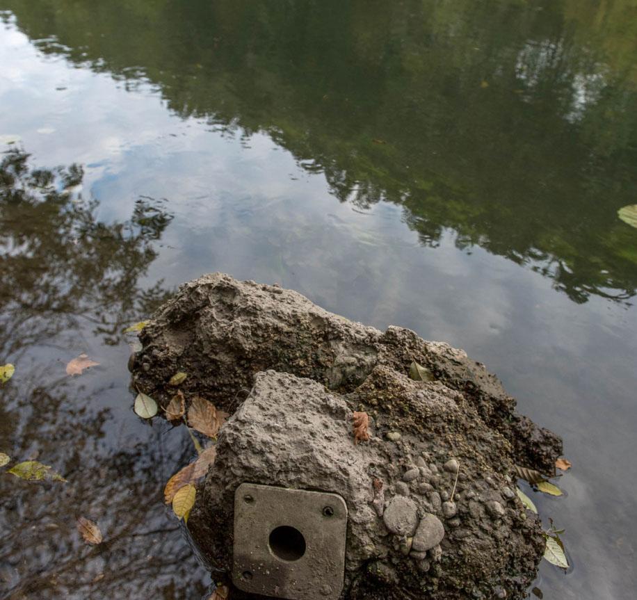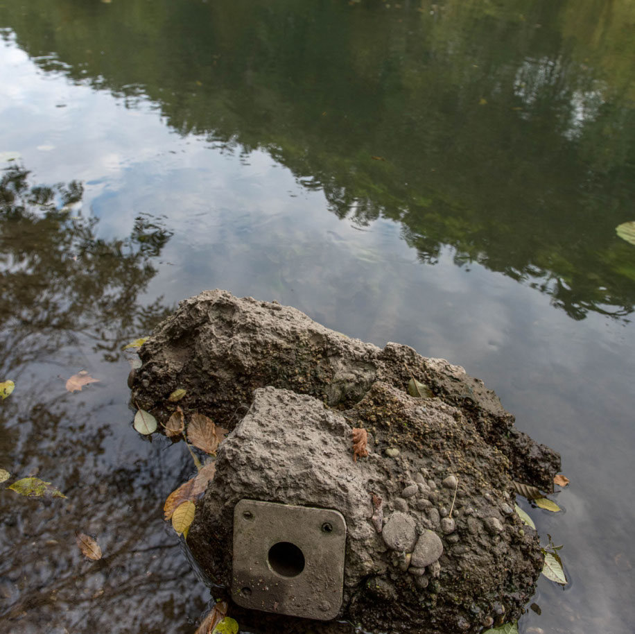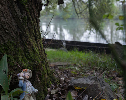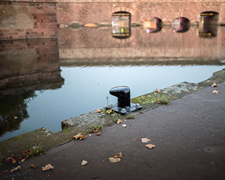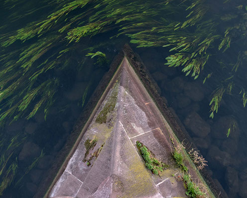 Ces curieux objets échoués le long des berges, suspendus ou émergeant de l’eau, apparaissent comme des obstacles incongrus, comme des portes ouvertes vers des tremplins poétiques, divisant le cadre, séparant l’image. C’est un peu comme si le peintre avait oublié ses brosses et ses tubes, et qu’ils étaient restés accrochés à la toile. Tout le long de l’Ill, des petites épaves abandonnées ou laissées pour compte, des objets techniques ou autres « systèmes D » des usagers, des déchets devenus informes ou des débris insignifiants nous racontent aussi l’histoire et le quotidien du fleuve. Par petites touches, cette entreprise d’usure des choses.