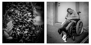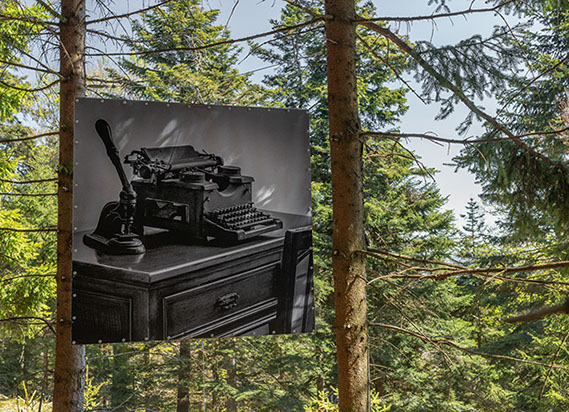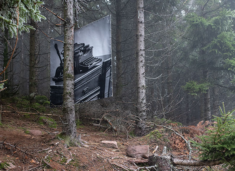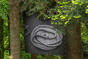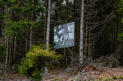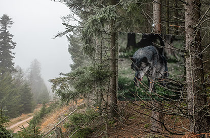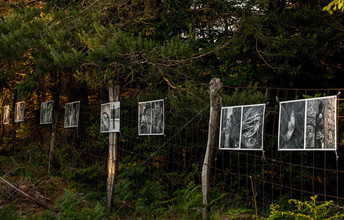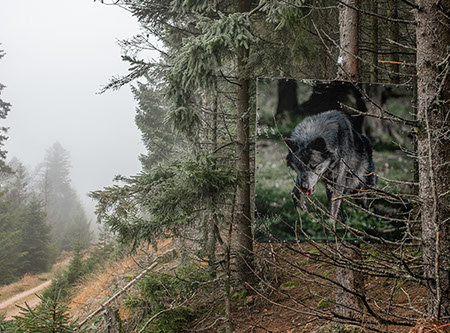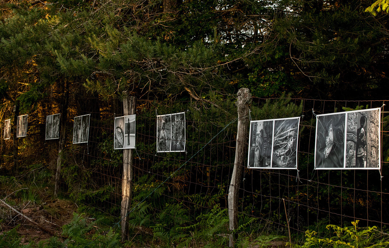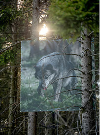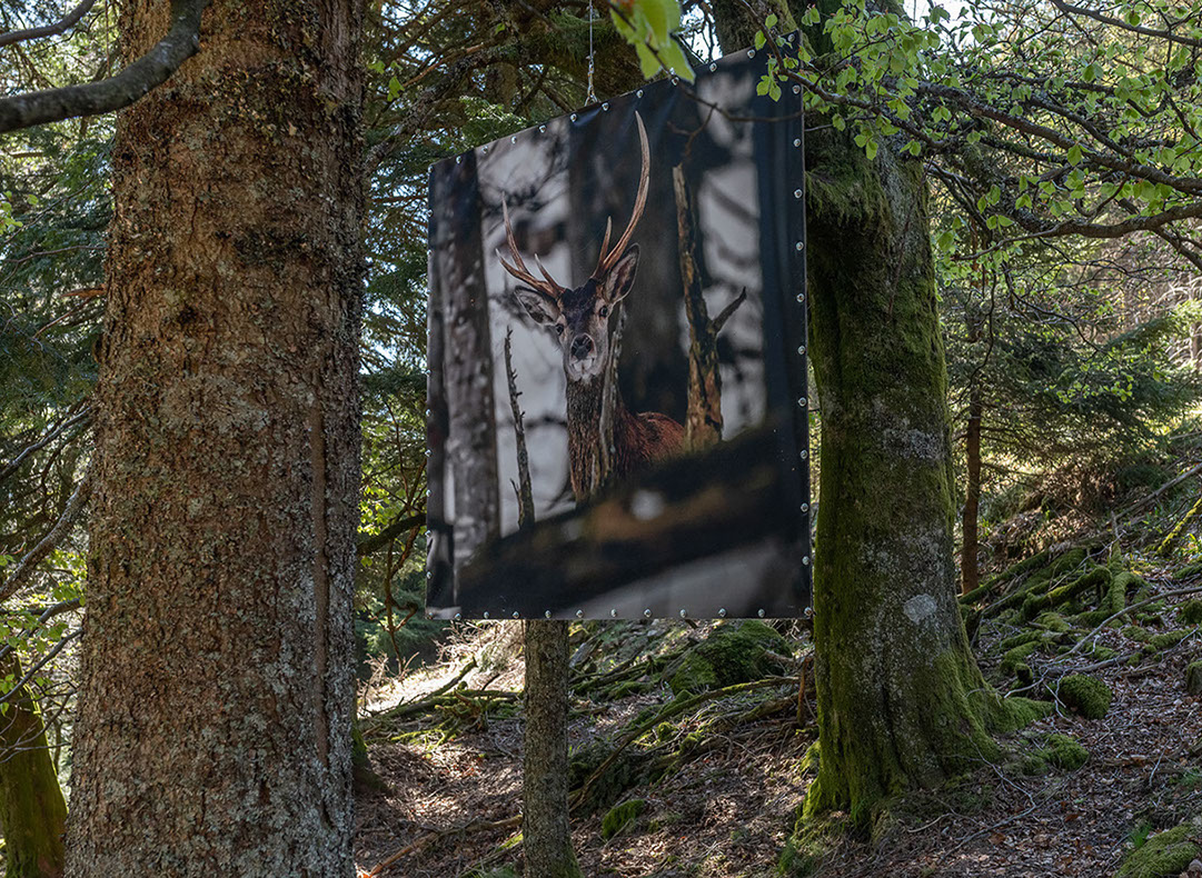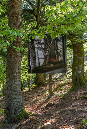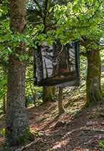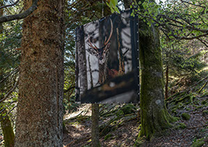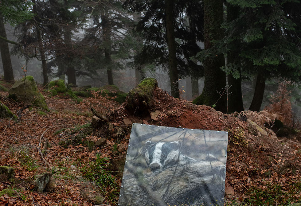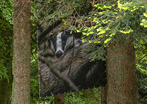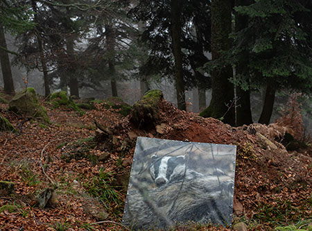Rébus ou analogies poétiques des duos d’images dans l’environnement forestier : le loup et l’écriture des contes, le cerf et le cycle des saisons, le blaireau «encordé» à sa tribu, le rouge gorge amarré sur sa branche prêt à s’envoler.