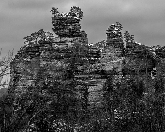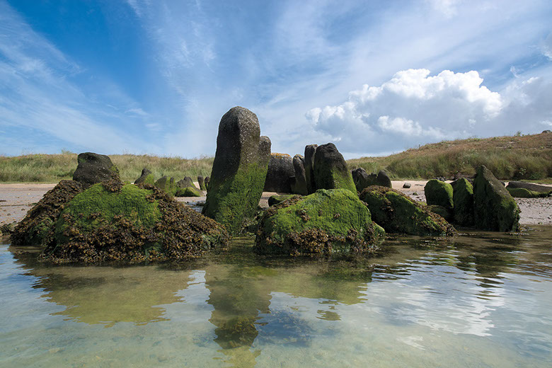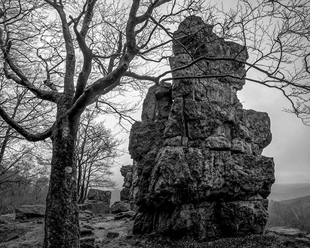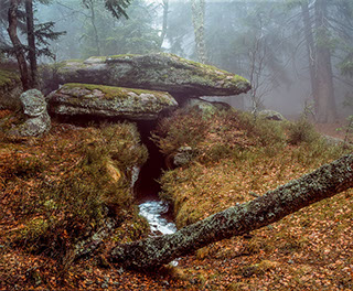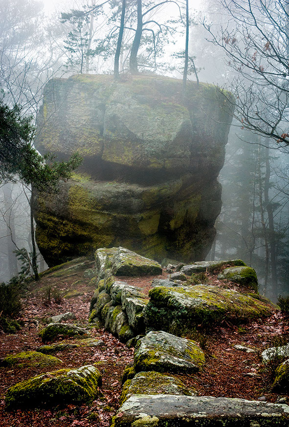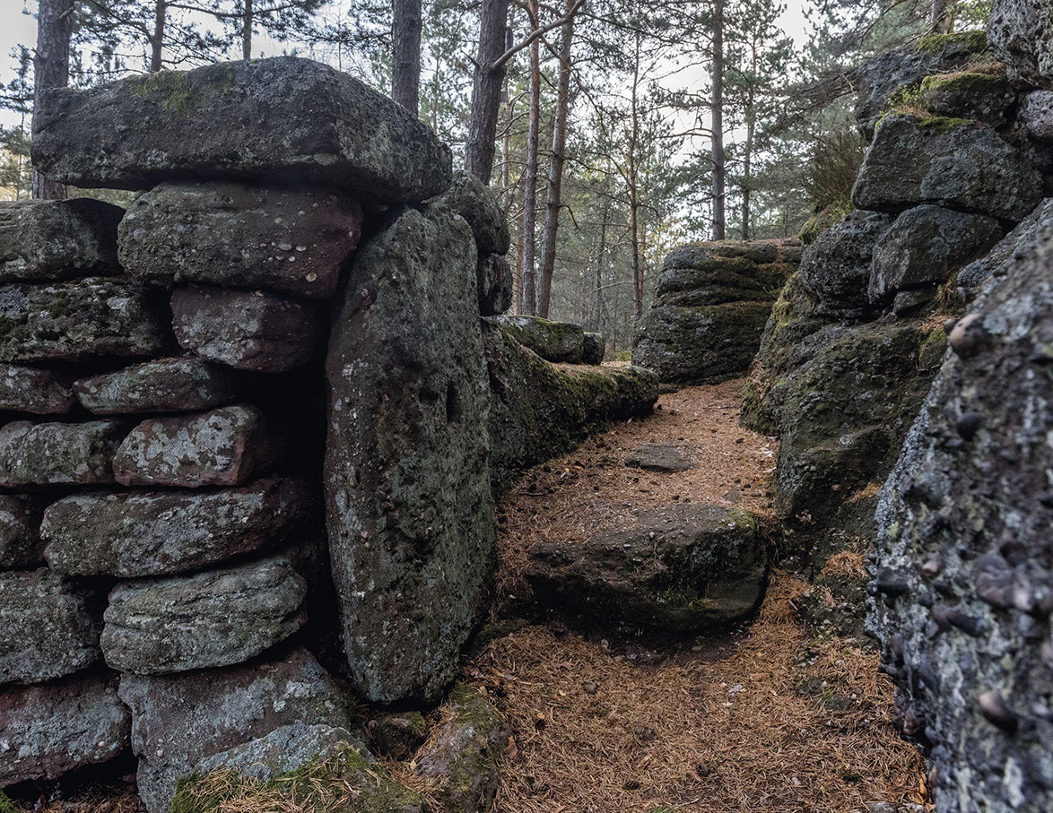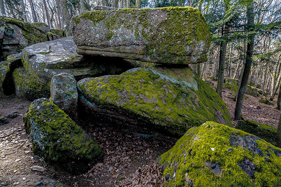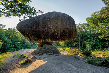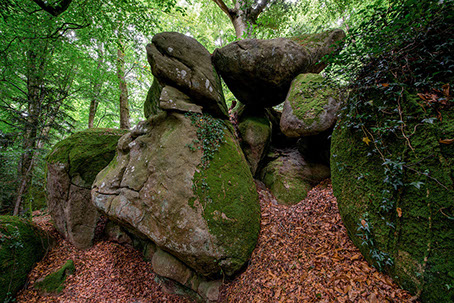 La région regorge aussi de sites patrimoniaux où la roche constitue dans les deux sens du terme la « pierre d’achoppement », le leitmotiv du lieu : mégalithes - dolmens, menhirs, tumuli, pierres gravées ou pierres à cupule, polissoirs, grottes, villages gallo-romains, voies romaines ou médiévales, détails d’architectures anciennes, chapelles sur des promontoires, cathédrales, abbayes et églises, monuments, tombes, murailles et châteaux, carrières et mines. Les pierres ont donc subi les marques de l’histoire humaine, flamboyantes, triomphantes et heureuses parfois, puissantes, terribles, guerrières d’autres fois.