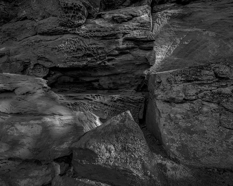 C’est cela, indéniablement, la plénitude. Alors quand il s’agit de photographier la roche, ce règne de la densité absolue, de la fausse immobilité, du temps géologique dépassant tout entendement, je ne peux que créer des relations, des ruptures ou des épousailles, que m’immiscer dans les noces de la nature artiste.