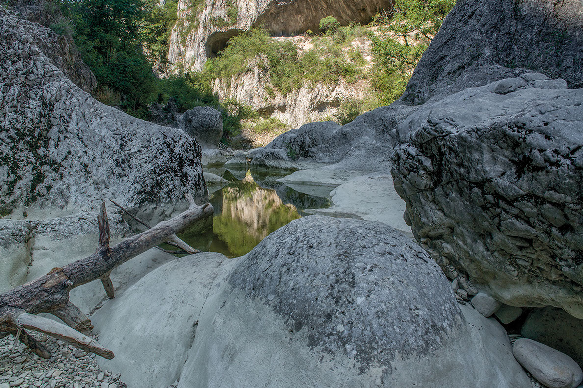 Du ruisseau à l’océan se révèlent toutes les possibilités plastiques de la roche. L’eau est sa compagne. Elle s’introduit où elle veut et quand elle veut, dans une « durée infinie » dans un harcèlement inouï.