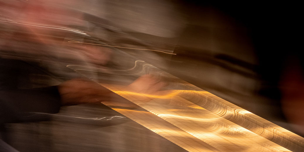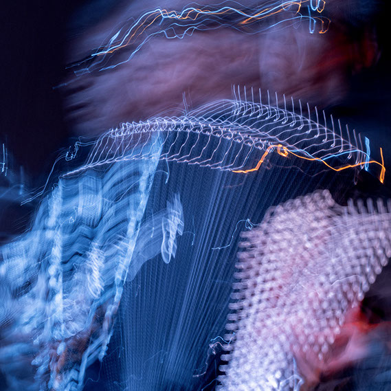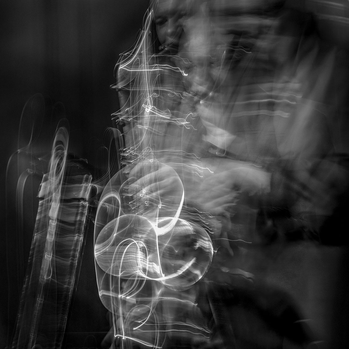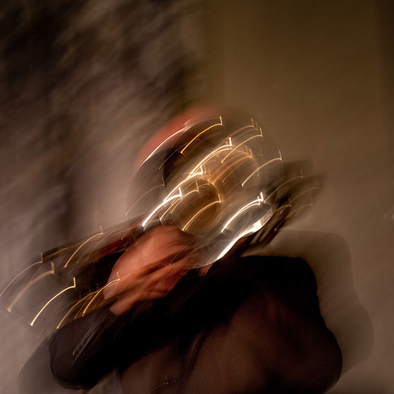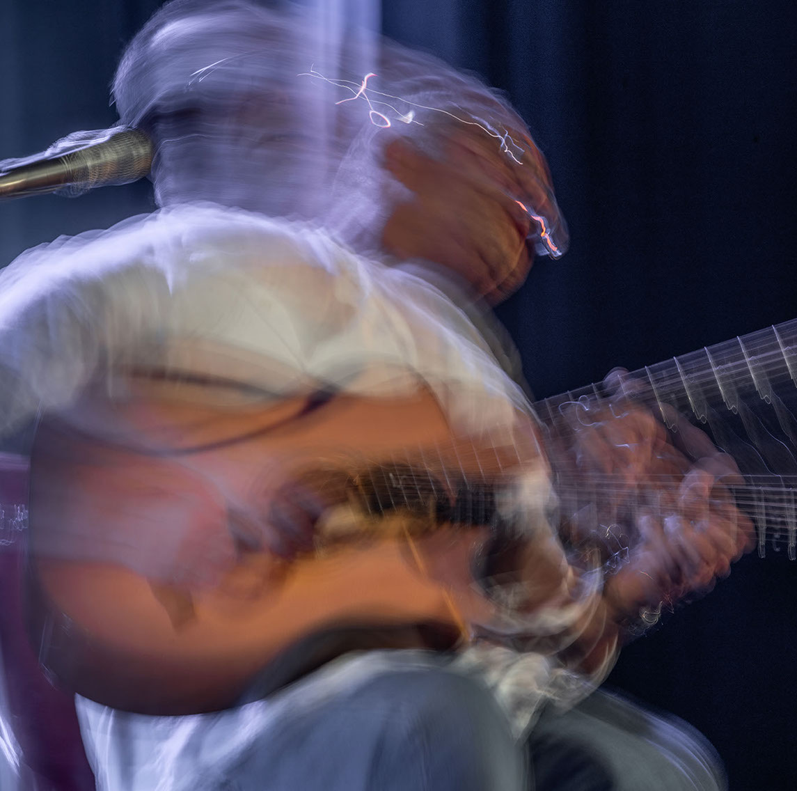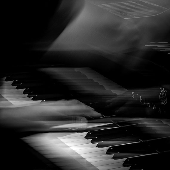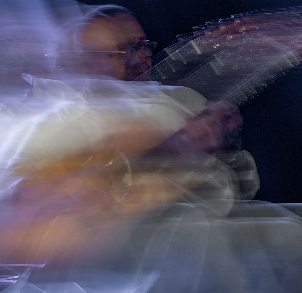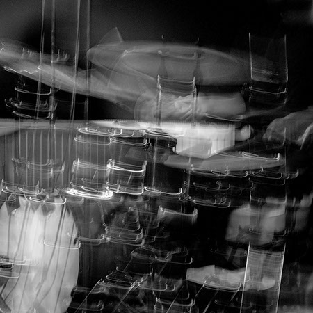 C’est, au départ de l'aventure, un pari fou que Lisa Erbès m’a lancé : parvenir à capter les vibrations des cordes de l’instrument, défi paradoxal, car une photographie est par nature immobile, tandis que la musique est mouvement. Elle n’est qu’une bouffée du souvenir du temps, dit Pascal Quignard. C’est en cela qu’elle rejoint la photo, car toutes deux usent des sortilèges de la nostalgie. Je rejoins ainsi, très inconsciemment, la chronophotographie de Marey et Muybridge à la fin du XIXème siècle. Beaucoup d’autres photographes depuis ont expérimenté la captation du mouvement. Depuis ce temps, la recherche se poursuit avec d'autres musiciens.