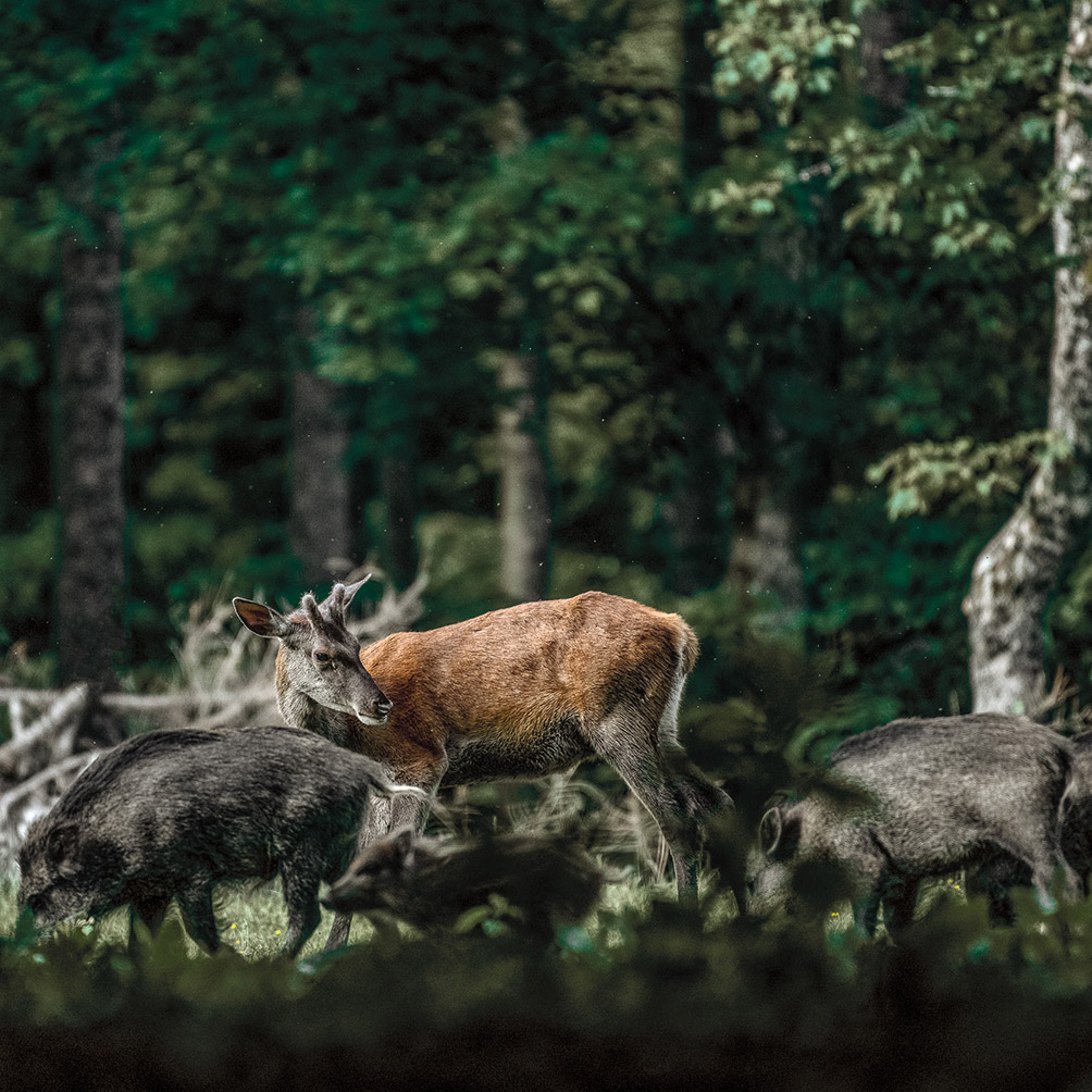 Et il est là, malgré tout, obligatoirement, l’univers animal dépositaire du bois. Ces farouches êtres vivants, si vivants, si curieux, si attentifs, ces fragiles habitants de toujours, ses présences furtives, ses cadeaux d’un instant, ses regards croisés, transpercés, ses oreilles tournées, bien entendantes, ses apparitions olfactives, ces rencontres fugaces, ces moments éternels, ces siècles de communion concentrés sur quelques secondes.