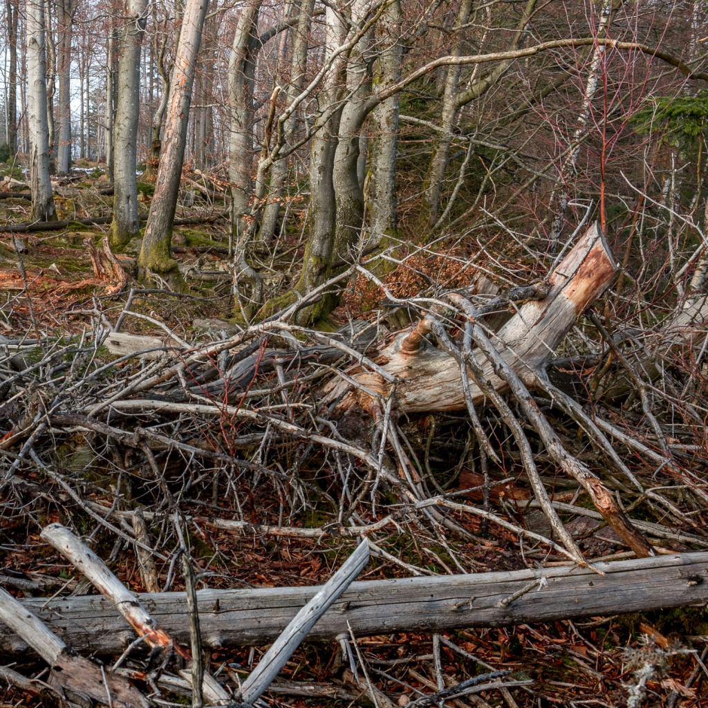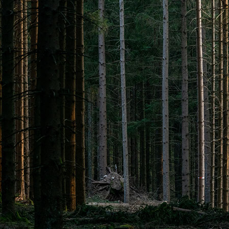C’est un monde immergé, une cité vivante, qui prend sa racine encore plus profondément que son fin tapis de feuilles, d’herbes et de brindilles, au cœur de cet humus humain et inhumain. De sa base, s’élancent d’innombrables doigts aspirés inexorablement par le ciel infini, ou poings levés revendiquant leur existence, mais communiquant toujours fraternellement avec ses voisins du bois : fleurs, herbacées, pousses en devenir, épais et forts troncs imposants leurs lignes et leurs écorces, ou frêles lances dressées papillonnantes, mais bien fixées au sol, tout de même. Ce monde de la forêt est imbriqué, altruiste, emmêlé de tout, et organisé sans en avoir l’air. Il s’est construit par le vent et par les échanges chimiques, mais aussi par quelques bipèdes policiers, juges et banquiers. Aujourd'hui, la forêt est inéluctablement économique, en "écho logique" à la marchandisation de la nature.