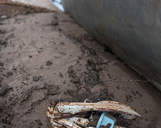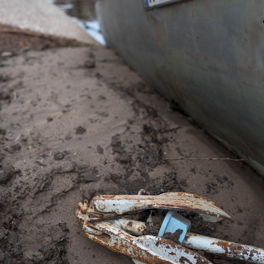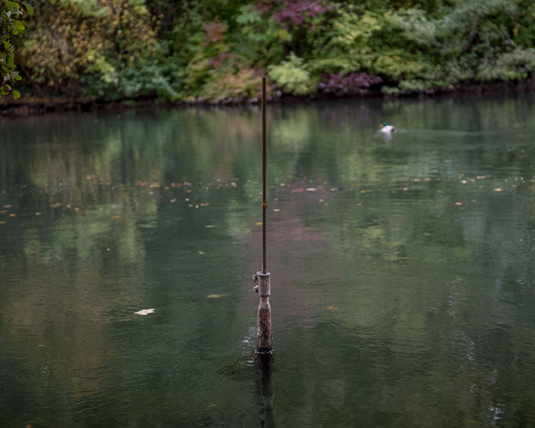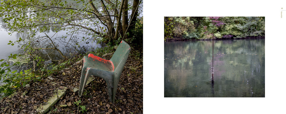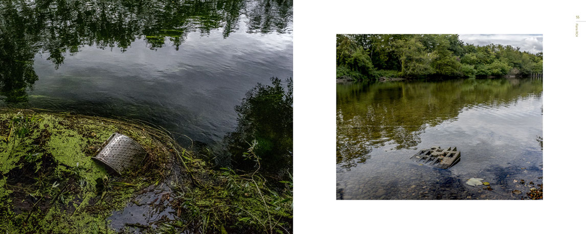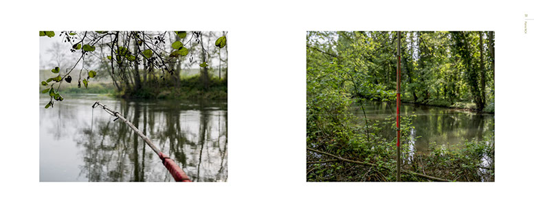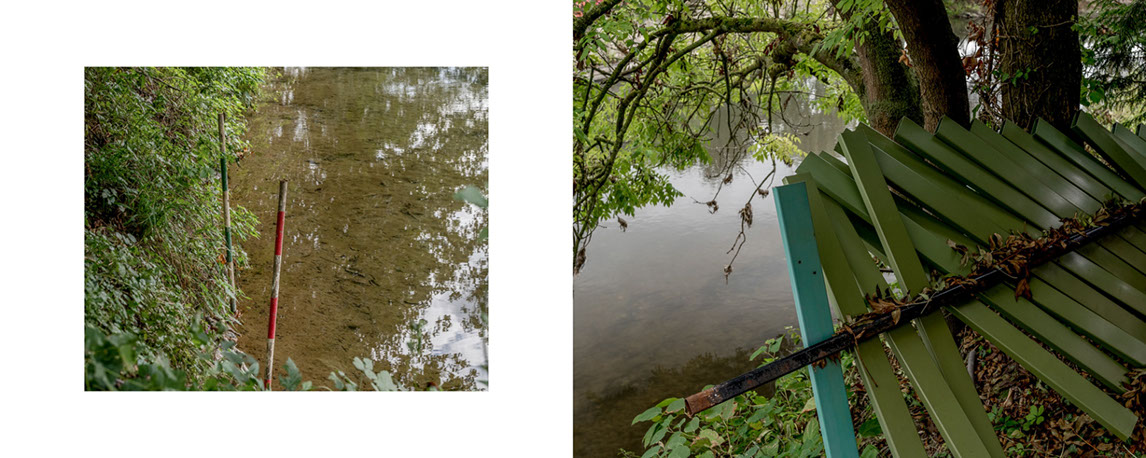 Ces curieux objets échoués le long des berges, suspendus ou émergeant de l’eau, apparaissent comme des obstacles incongrus, comme des portes ouvertes vers des tremplins poétiques, divisant le cadre, séparant l’image. C’est un peu comme si le peintre avait oublié ses brosses et ses tubes, et qu’ils étaient restés accrochés à la toile. Tout le long de l’Ill, des petites épaves abandonnées ou laissées pour compte, des objets techniques ou autres « systèmes D » des usagers, des déchets devenus informes ou des débris insignifiants nous racontent aussi l’histoire et le quotidien du fleuve. Par petites touches, cette entreprise d’usure des choses.