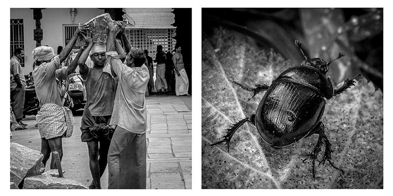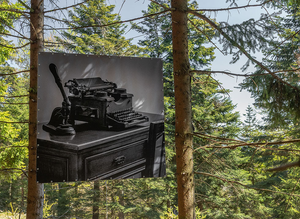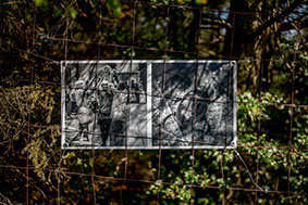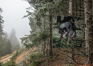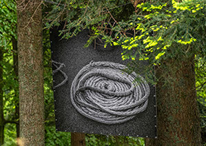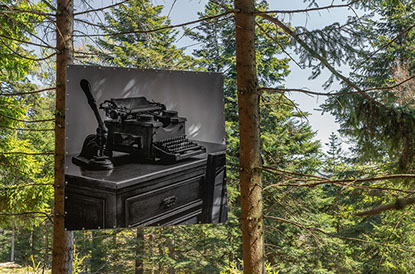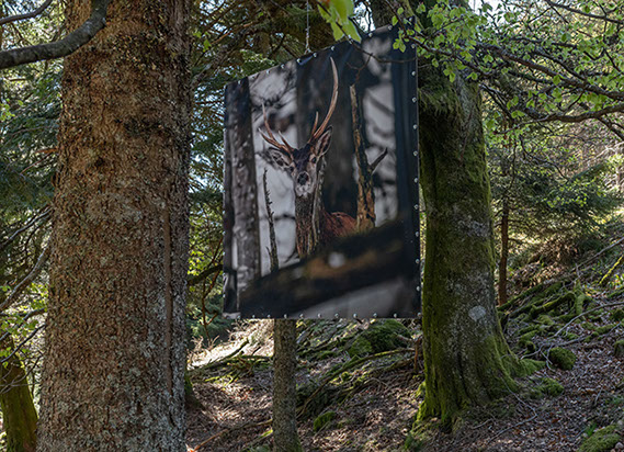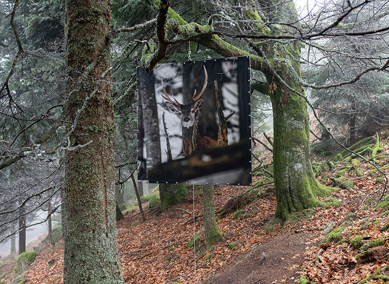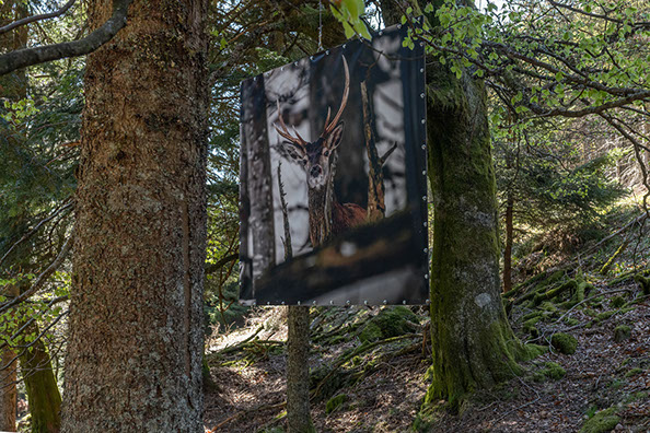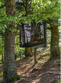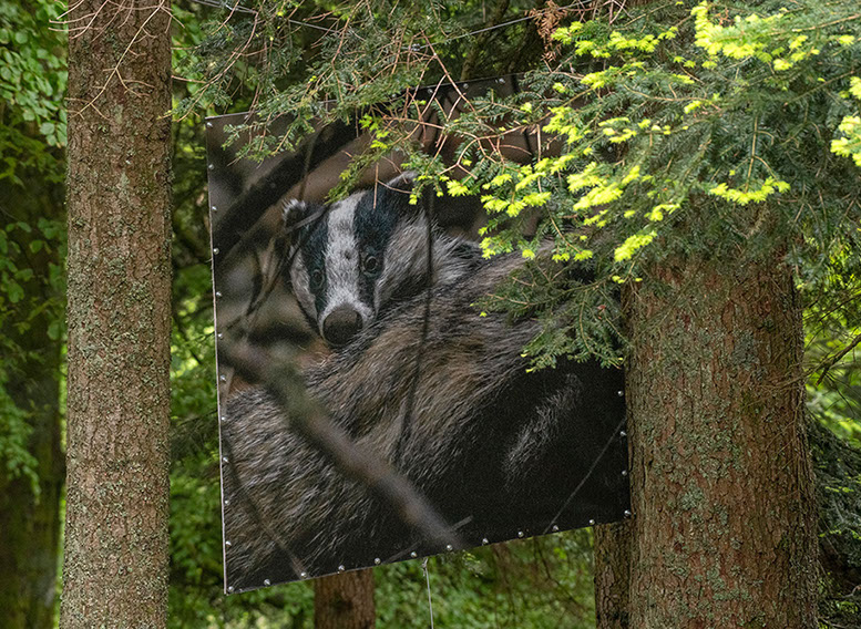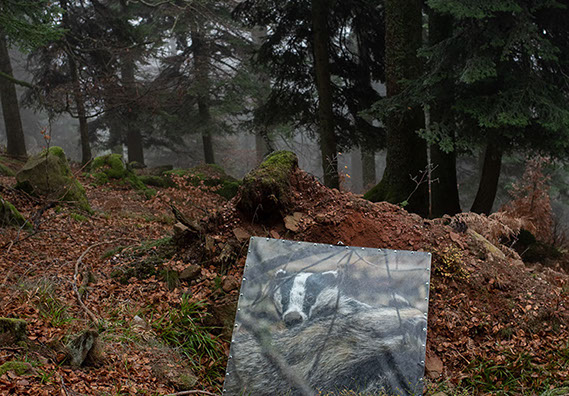 Rébus ou analogies poétiques des duos d’images dans l’environnement forestier : le loup et l’écriture des contes, le cerf et le cycle des saisons, le blaireau «encordé» à sa tribu, le rouge gorge amarré sur sa branche prêt à s’envoler.