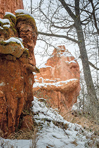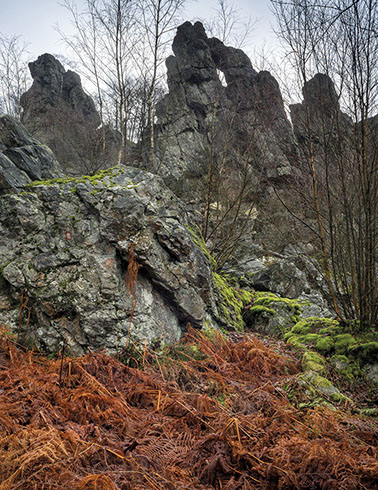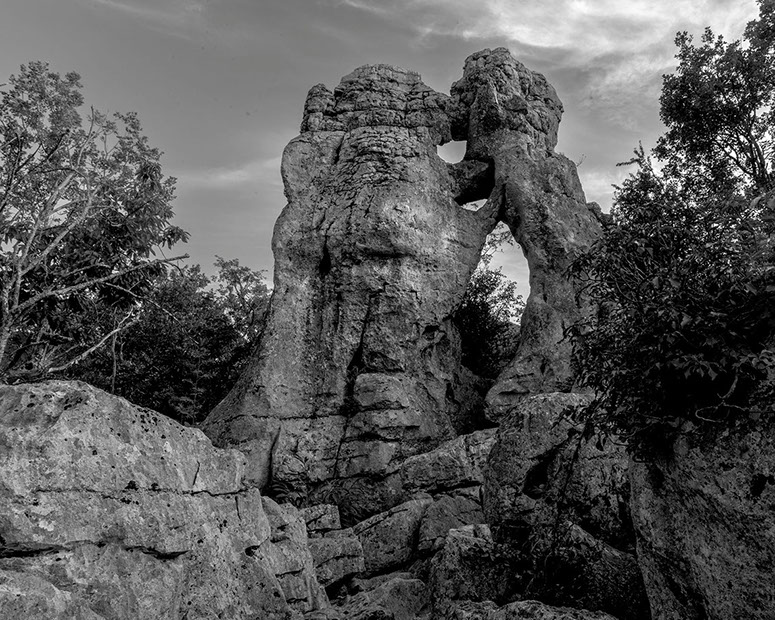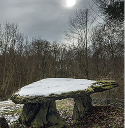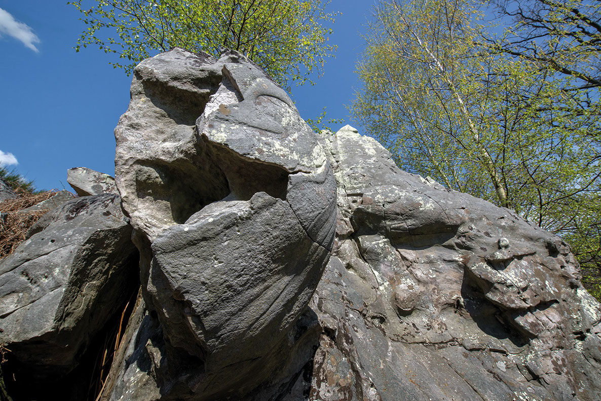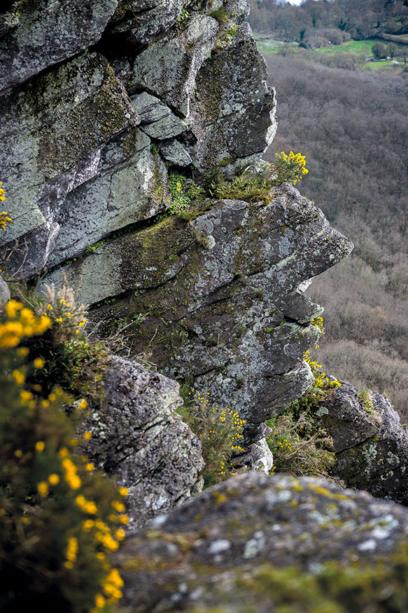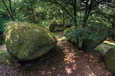 La région regorge aussi de sites patrimoniaux où la roche constitue dans les deux sens du terme la « pierre d’achoppement », le leitmotiv du lieu : mégalithes - dolmens, menhirs, tumuli, pierres gravées ou pierres à cupule, polissoirs, grottes, villages gallo-romains, voies romaines ou médiévales, détails d’architectures anciennes, chapelles sur des promontoires, cathédrales, abbayes et églises, monuments, tombes, murailles et châteaux, carrières et mines. Les pierres ont donc subi les marques de l’histoire humaine, flamboyantes, triomphantes et heureuses parfois, puissantes, terribles, guerrières d’autres fois.