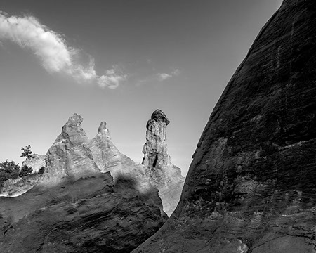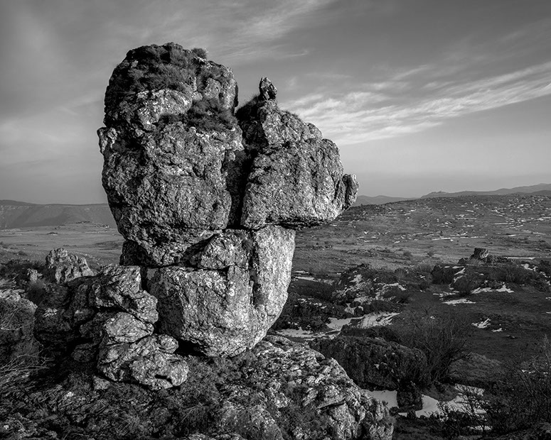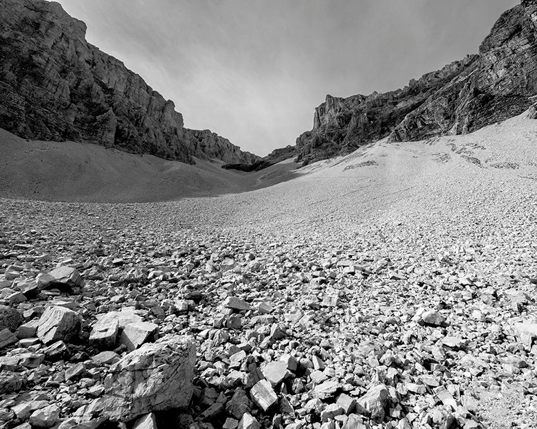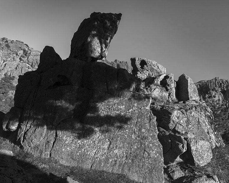 C’est cela, indéniablement, la plénitude. Alors quand il s’agit de photographier la roche, ce règne de la densité absolue, de la fausse immobilité, du temps géologique dépassant tout entendement, je ne peux que créer des relations, des ruptures ou des épousailles, que m’immiscer dans les noces de la nature artiste.