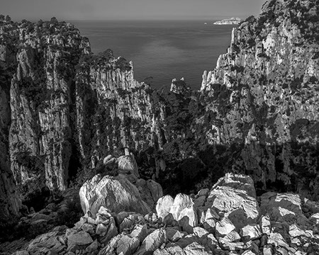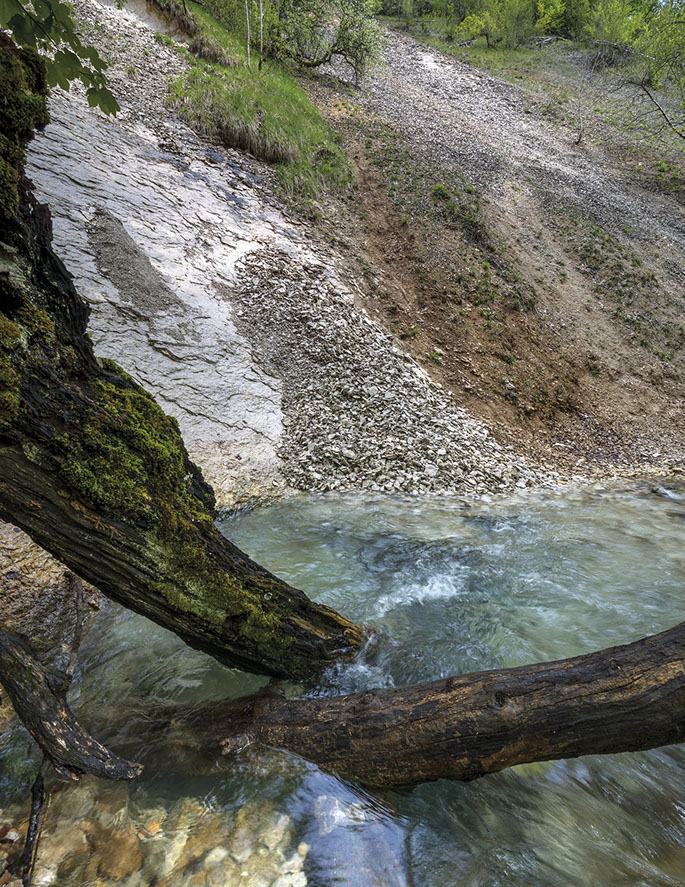 Du ruisseau à l’océan se révèlent toutes les possibilités plastiques de la roche. L’eau est sa compagne. Elle s’introduit où elle veut et quand elle veut, dans une « durée infinie » dans un harcèlement inouï.