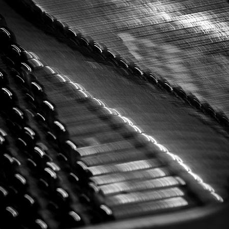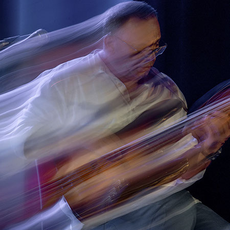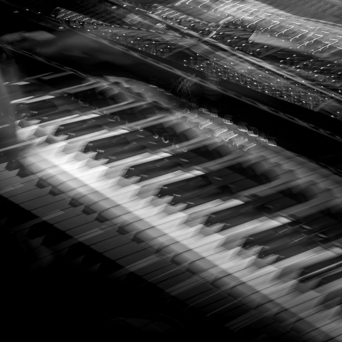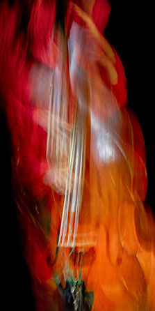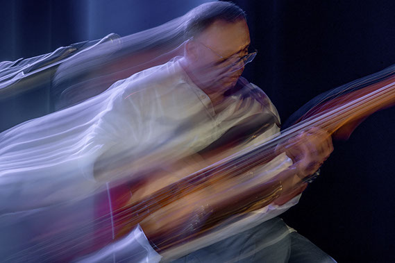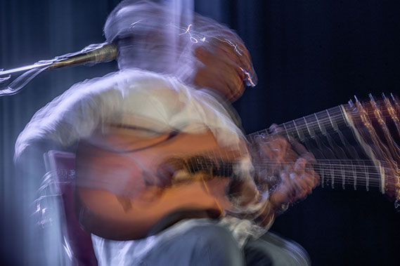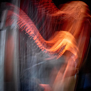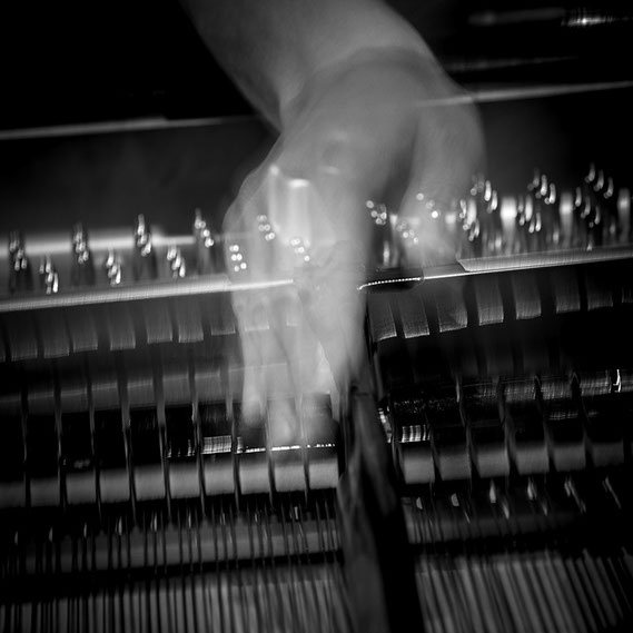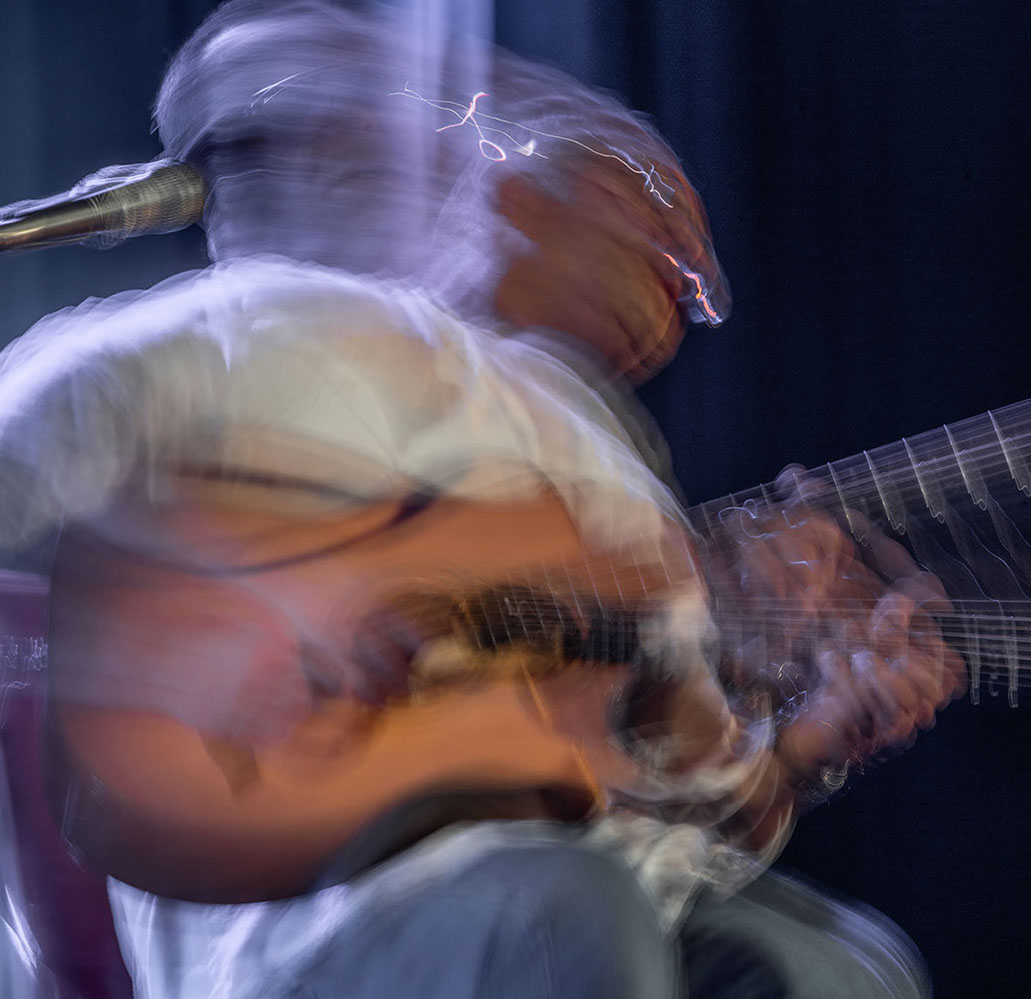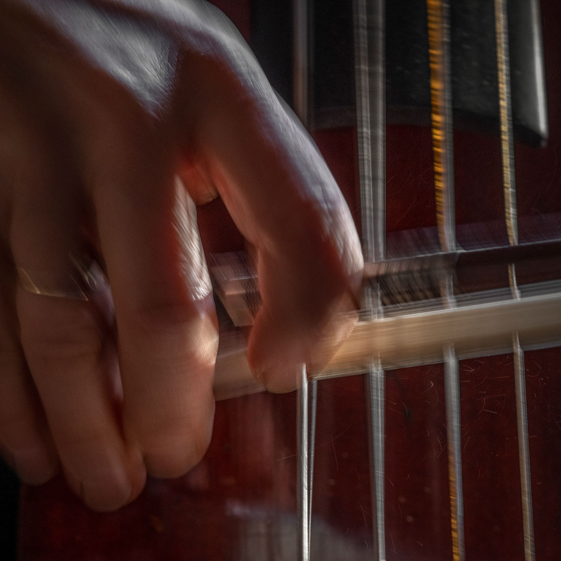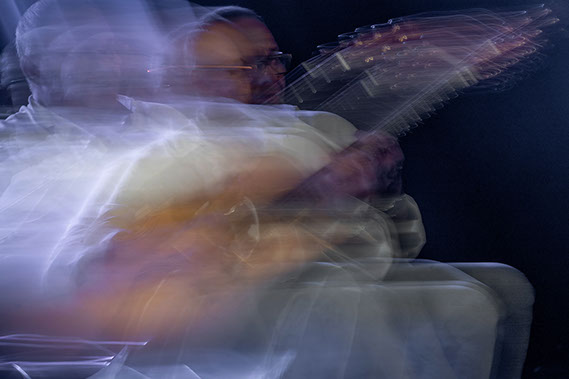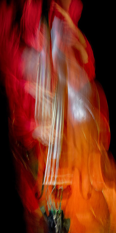C’est, au départ de l'aventure, un pari fou que Lisa Erbès m’a lancé : parvenir à capter les vibrations des cordes de l’instrument, défi paradoxal, car une photographie est par nature immobile, tandis que la musique est mouvement. Elle n’est qu’une bouffée du souvenir du temps, dit Pascal Quignard. C’est en cela qu’elle rejoint la photo, car toutes deux usent des sortilèges de la nostalgie. Je rejoins ainsi, très inconsciemment, la chronophotographie de Marey et Muybridge à la fin du XIXème siècle. Beaucoup d’autres photographes depuis ont expérimenté la captation du mouvement. Depuis ce temps, la recherche se poursuit avec d'autres musiciens.
